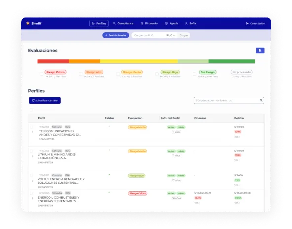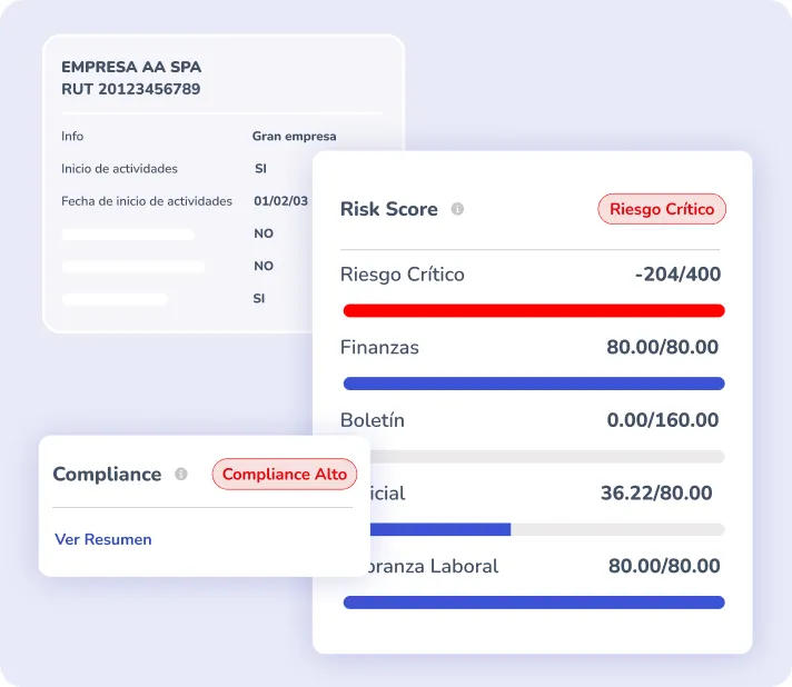 Cargando un perfil, en solo 5 segundos obtén el Risk Score, Compliance Score y la info clave para tomas desiciones