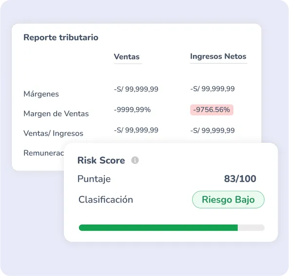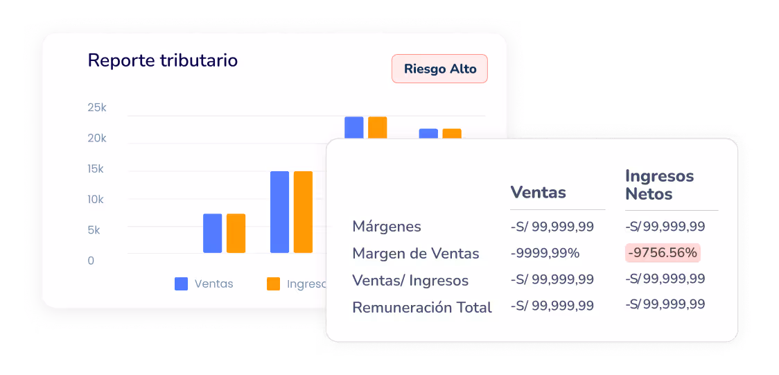 Procesa tu reporte para obtener resumen de ventas, ingreso neto, aportes ESSALUD, remuneración bruta, márgenes, indicadores de endeudamiento y rentabilidad, saldos de declaraciones juradas y comportamiento tributario